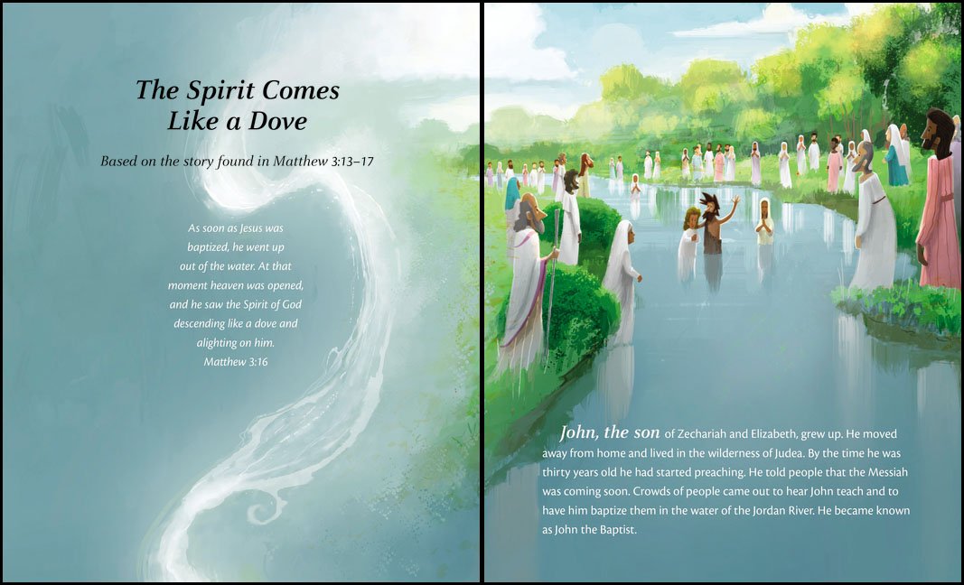 The Spirit of God Illustrated Bible brings to life more than 40 Bible stories that help readers understand that God’s Spirit has been with us since the beginning of time and continues to be with us today. From the glory of creation through the powerful letters of Paul, God’s Spirit is living in his people. Old and New Testament stories such as Adam and Eve, Abraham, Joseph, the Baptism of Jesus, and Pentecost come alive with dramatic illustrations by Fernando Juarez and moving text by Doris Rikkers. With a cover that sparkles and shines with foil, this is a special storybook Bible that will appeal to both children and parents alike.